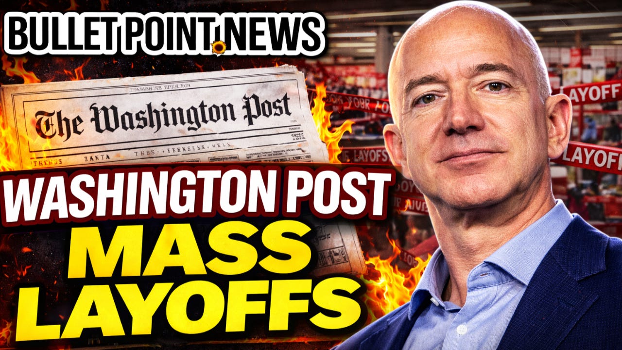 The The Washington Post laid off roughly one-third of its workforce as owner Jeff Bezos pushes aggressive cuts to restore profitability, slashing major desks including Metro, Sports, Books, and international coverage. The move sparked internal backlash, with critics claiming Bezos is repositioning the paper amid political pressures tied to Donald Trump,…